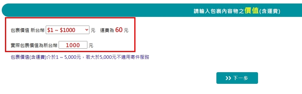 - 包裹價值設定1000元即可,運費僅退60元,若超額則由寄件人自行吸收